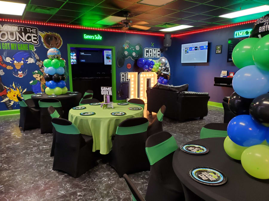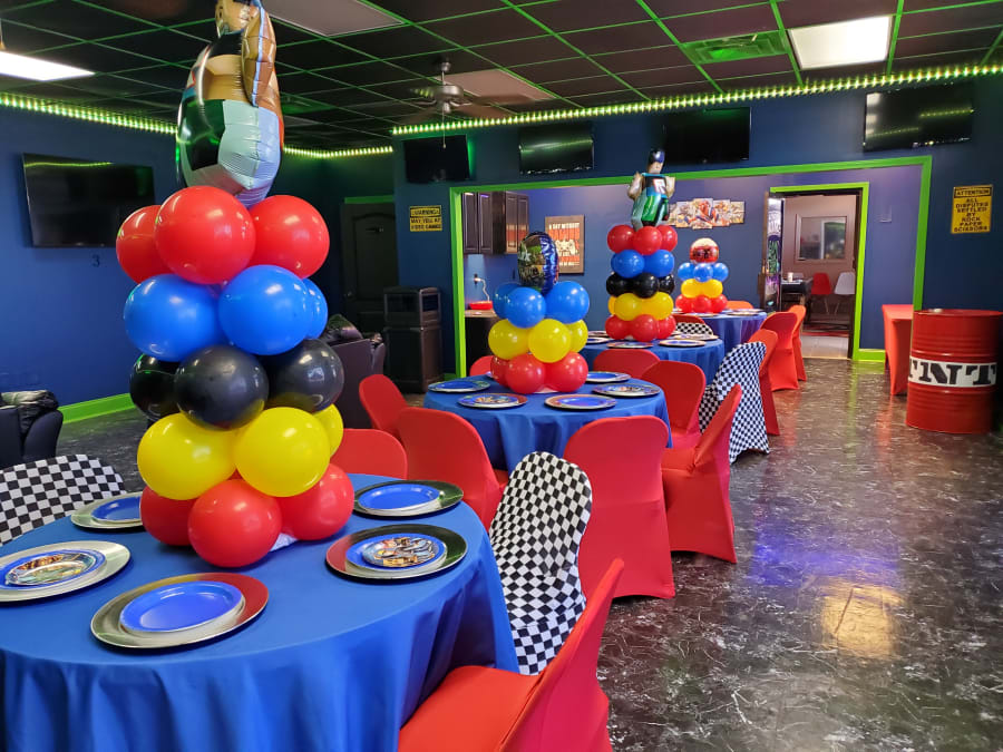 The All in One Package Includes: (this package only includes decorations in the Game Room. Customers have the option to decorate the Bounce Center themselves or add-on decorations to the package. No outside decorating companies are allowed)
